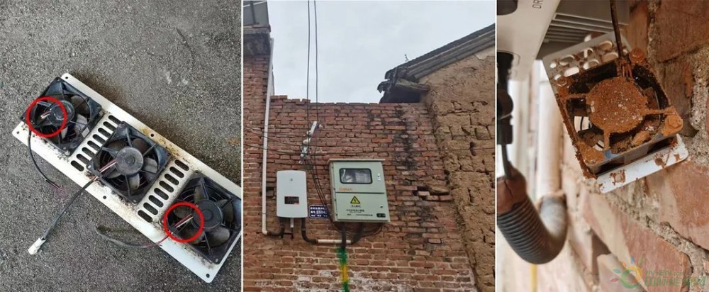 光伏逆變器安裝于戶外環境,因此戶外許多不可控因素會影響到逆變器風扇運行,比如枯枝落葉堆積、土坯泥沙卡頓、蛇蟲鼠蟻破壞等。