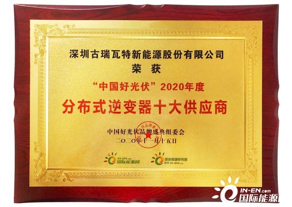 近日,“第五屆中國光伏產業論壇暨2020中國好光伏品牌盛典”在北京隆重舉辦。古瑞瓦特憑借強大創新力、出色的品質與服務,贏得用戶及行業認可,斬獲“中國好光伏·2020年度分布式逆變器十大供應商”、“中國好光伏·2020光伏逆變器十大供應商”兩項大獎。古瑞瓦特憑借強大綜合實力及品牌影響力,不負眾望,連續第5年獲評該獎項,蟬聯分布式逆變器第二,這是行業、市場、消費者的三重肯定。