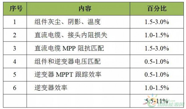 系統損失是綜合發電量的損失,數值根據條件在變化。影響最大功率輸出的因素是組件和直流電纜,為了提升輸出功率,必須盡量減少各種損耗。光伏安裝地點確定后,組件的安裝角度、組件溫度,逆變器本身的損耗、MPPT跟蹤效率等因素,改變較困難。但直流電纜損失、直流電纜阻抗匹配、組件和逆變器電壓匹配等因素,則是可控制的。