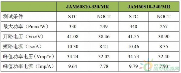 STC(標準測試環境Standard test condition):輻照度1000W/m2,電池溫度25℃,光譜AM1.5。NOCt(電池片標稱工作溫度條件Normal Operating Cell Temperature):輻照度800W/m2,環境溫度20℃,光譜AM1.5,風速1m/S。從表中可以看到,當條件由理想的STC環境轉到現實中NOCT環境時,組件的功率發生很大變化,如330W的組件,變成249W。