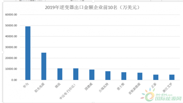 近日,2019年全年的海關(guān)數(shù)據(jù)已出爐,根據(jù)統(tǒng)計,2019年全年,中國的逆變器出口量約為3155.47萬臺,出口總金額達到了近29億美元(含光伏、風(fēng)電、汽車電源等),前20家光伏逆變器公司的出口金額超過了總出口額的50%,約為15.42億美元。其中華為、陽光,錦浪,臺達,固德威位列2019年出口逆變器企業(yè)前五名。