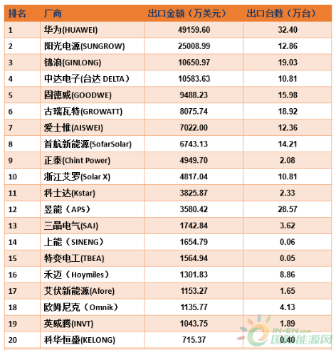 逆變器出口TOP 20:華為、陽光、錦浪領(lǐng)銜,固德威、古瑞瓦特、三晶等上榜