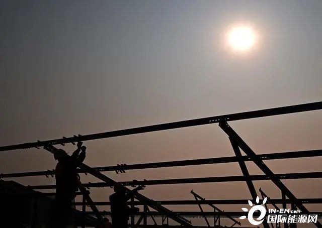 1月5日,建設者在華電海晶光伏項目B標段施工。新華社記者 李然 攝