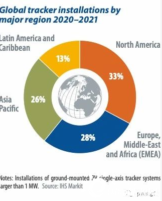 2020-2021年全球各主要地區(qū)跟蹤器安裝量一覽