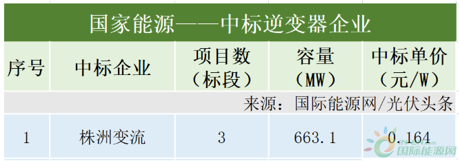 國(guó)家能源集團(tuán)有3個(gè)項(xiàng)目(標(biāo)段)定標(biāo),合計(jì)容量663.1MW。值得關(guān)注的是,株洲變流中標(biāo)國(guó)家能源集團(tuán)所有3個(gè)項(xiàng)目(標(biāo)段),其中有一個(gè)項(xiàng)目披露了中標(biāo)價(jià)格,單價(jià)為0.164元/W。
